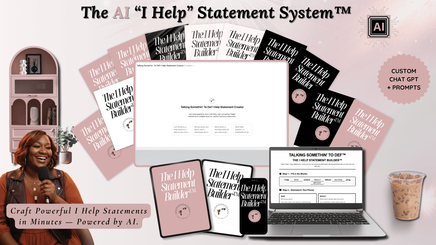 Grab your free copy of the AI “I Help” Statement System™ from Talking Something To Def and get your message in motion today. Because when you can clearly tell who you help and how, your brand doesn’t just exist—it commands attention, creates impact, and fuels revenue.